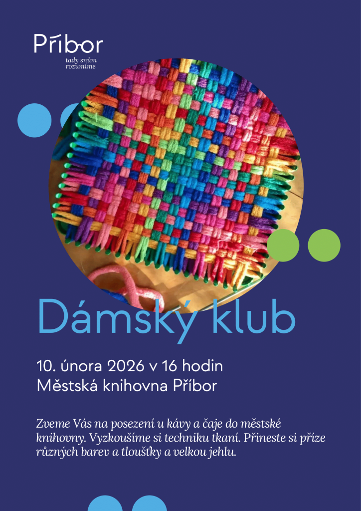 Město Příbor společně s městskou knihovnou Příbor Vás zvou na posezení u kávy a čaje na Dámský klub.