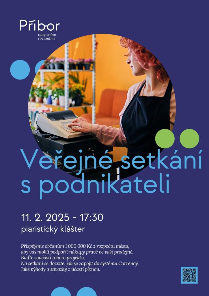 Město Příbor Vás zve na veřejné setkání s podnikateli dne 11. 2. 2025 od 17:30 hodin v piaristickém klášteře Příbor.